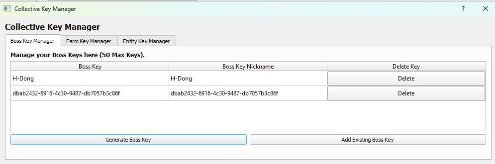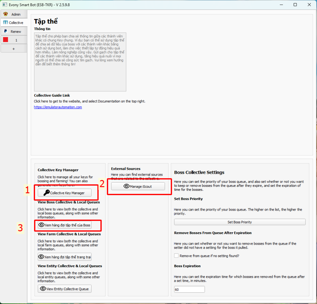 1. Collective Key Manager là nơi quản lý key tạo ra để kết nối các tabs chạy chung key đảm bảo kết nối. Như chia sẽ tọa độ boss hoặc lấy tọa độ boss. Ngoài ra còn có thể thêm key của người dùng cùng server có sử dụng esb để kết nối lẫn nhau.